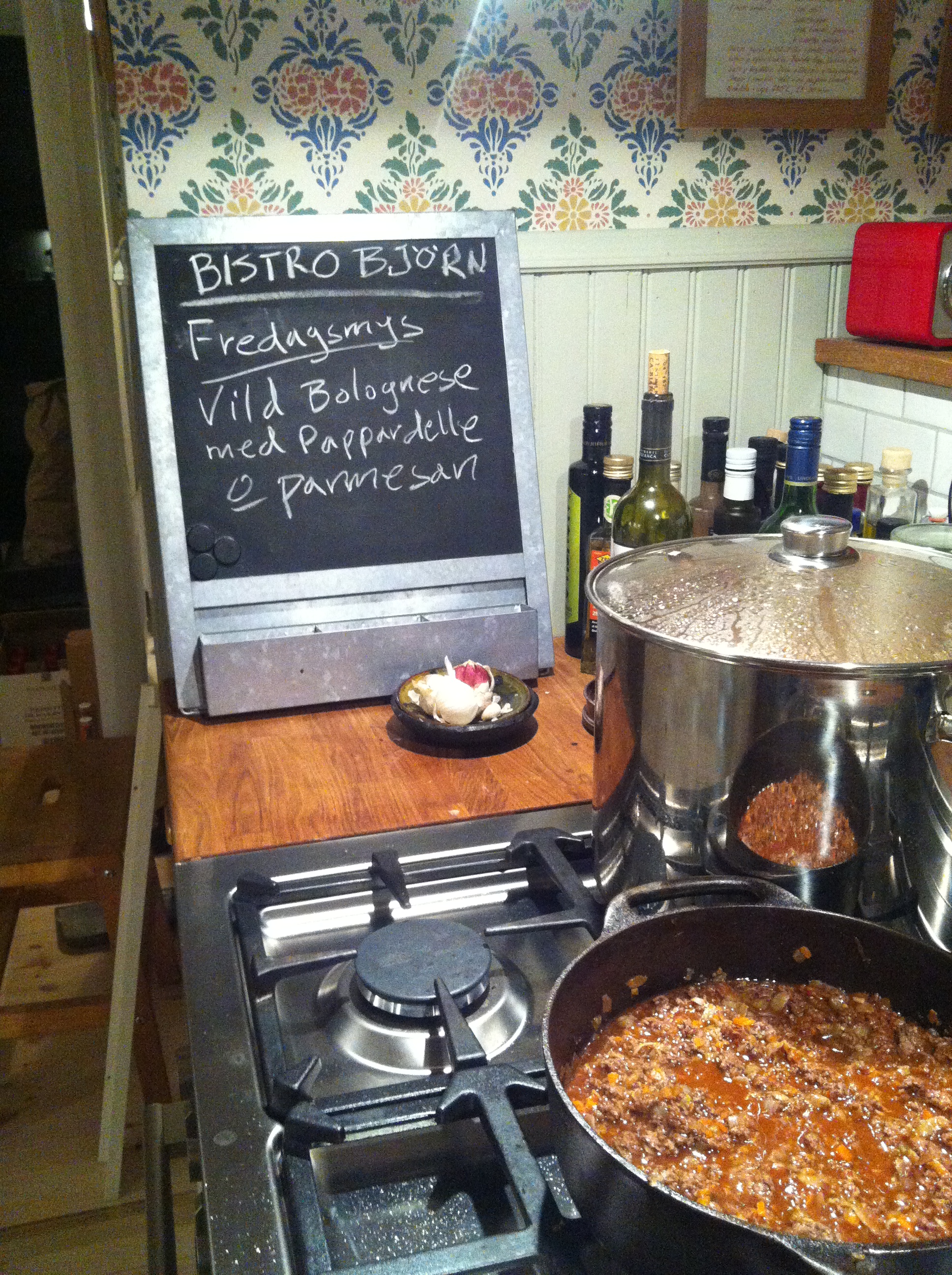 Testade att göra en riktig ragu Bolognese, fast med älgfärs istället för kalvfärs och en viltfond som jag gjort på rådjuret som grannen