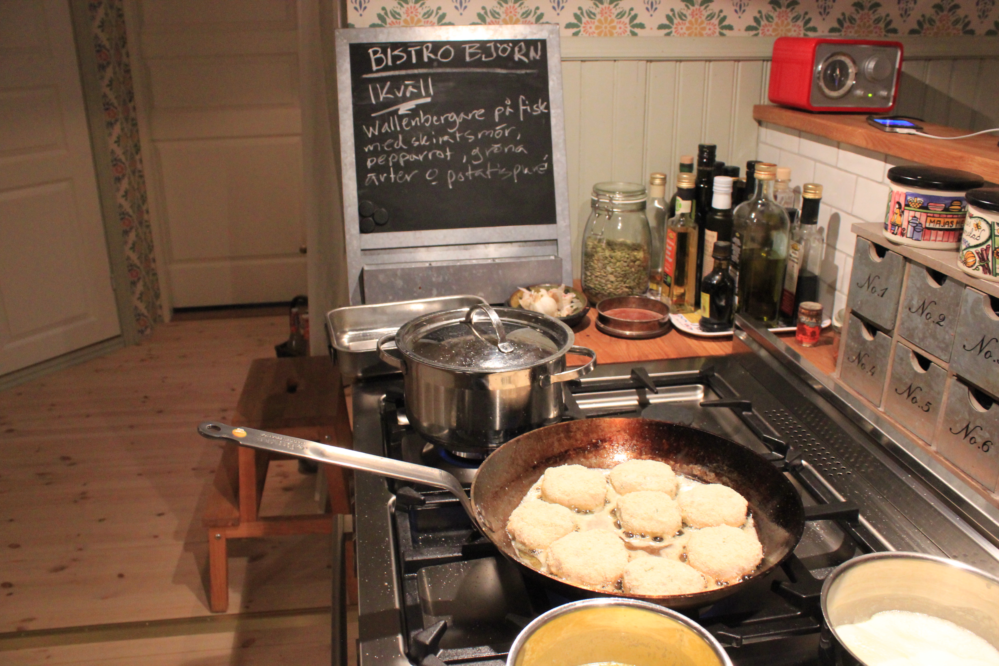Fräs biffarna i rikligt med smör på medelstark värme. Var försiktig så att du inte bränner paneringen. Håll biffarna varma i ugnen på 100 grader.