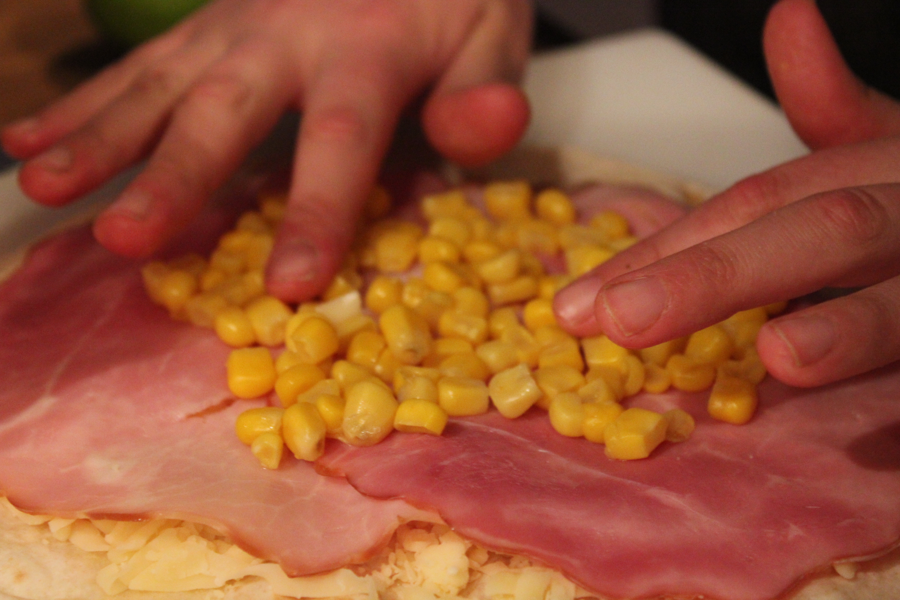 med skinka, majs, chili och massor med ost tilltalar de flesta, till och med min osttveksamma äldsta dotter.