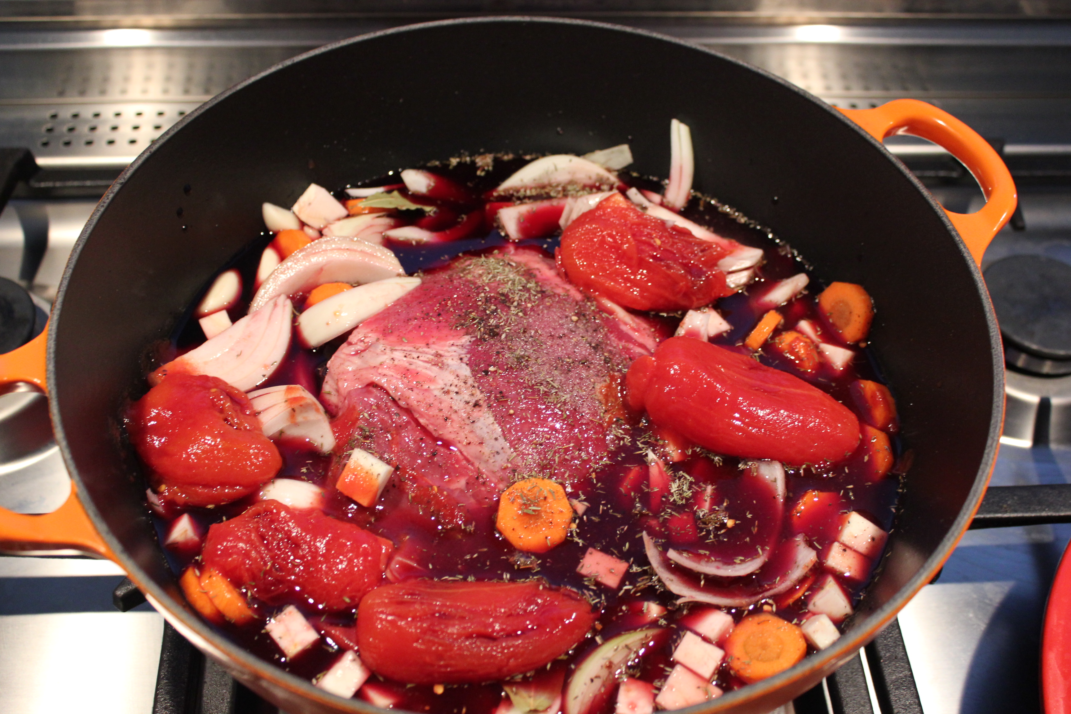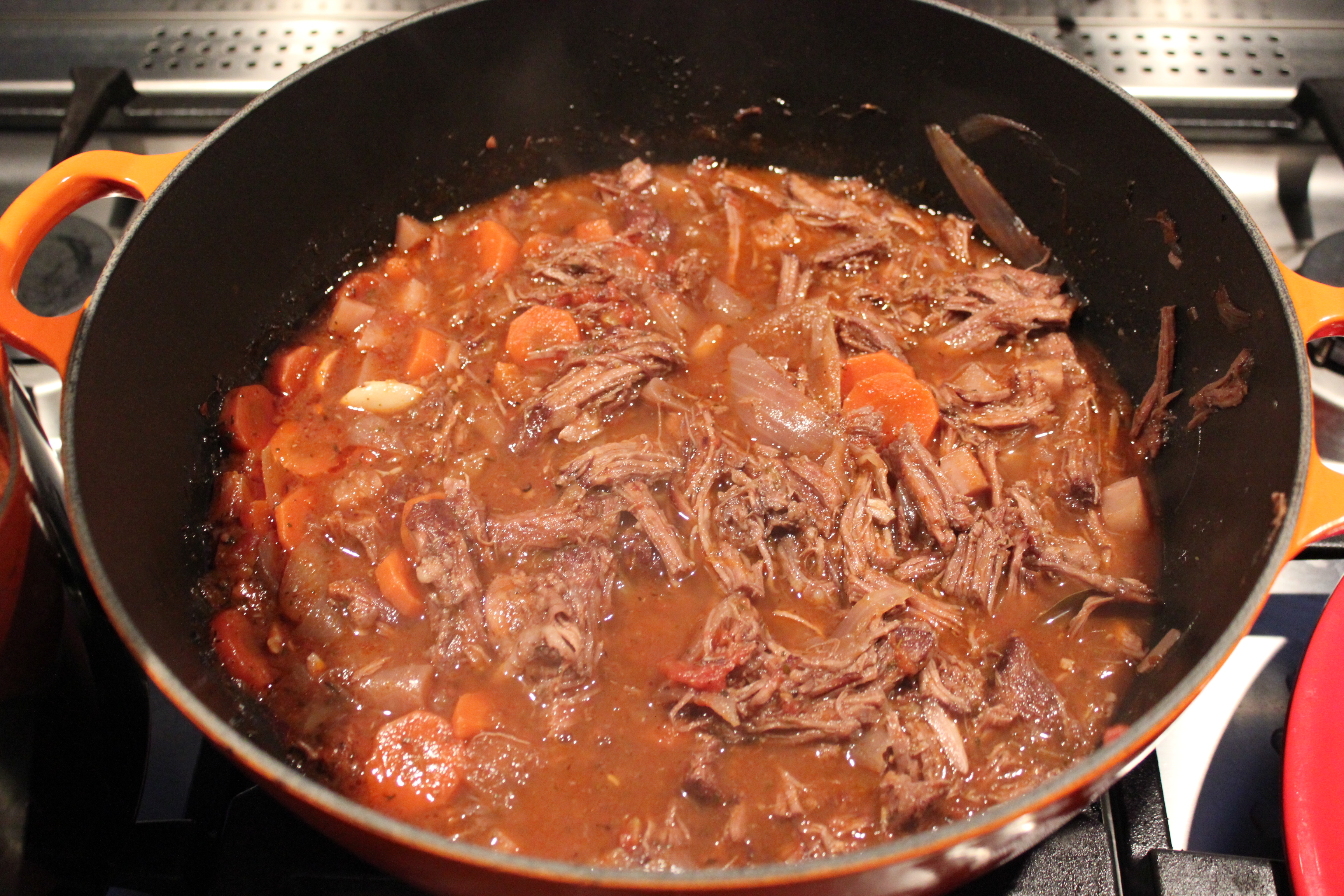 är tacksamt eftersom man inte är så styrd av exakta koktider, bara att det ska koka länge. Receptet kommer ursprungligen från en bok av Jens Dolk och Liselotte Forslin, Kombinera Mat och Vin (2012). Jag har dock gjort om receptet något efter mina smaklökar.