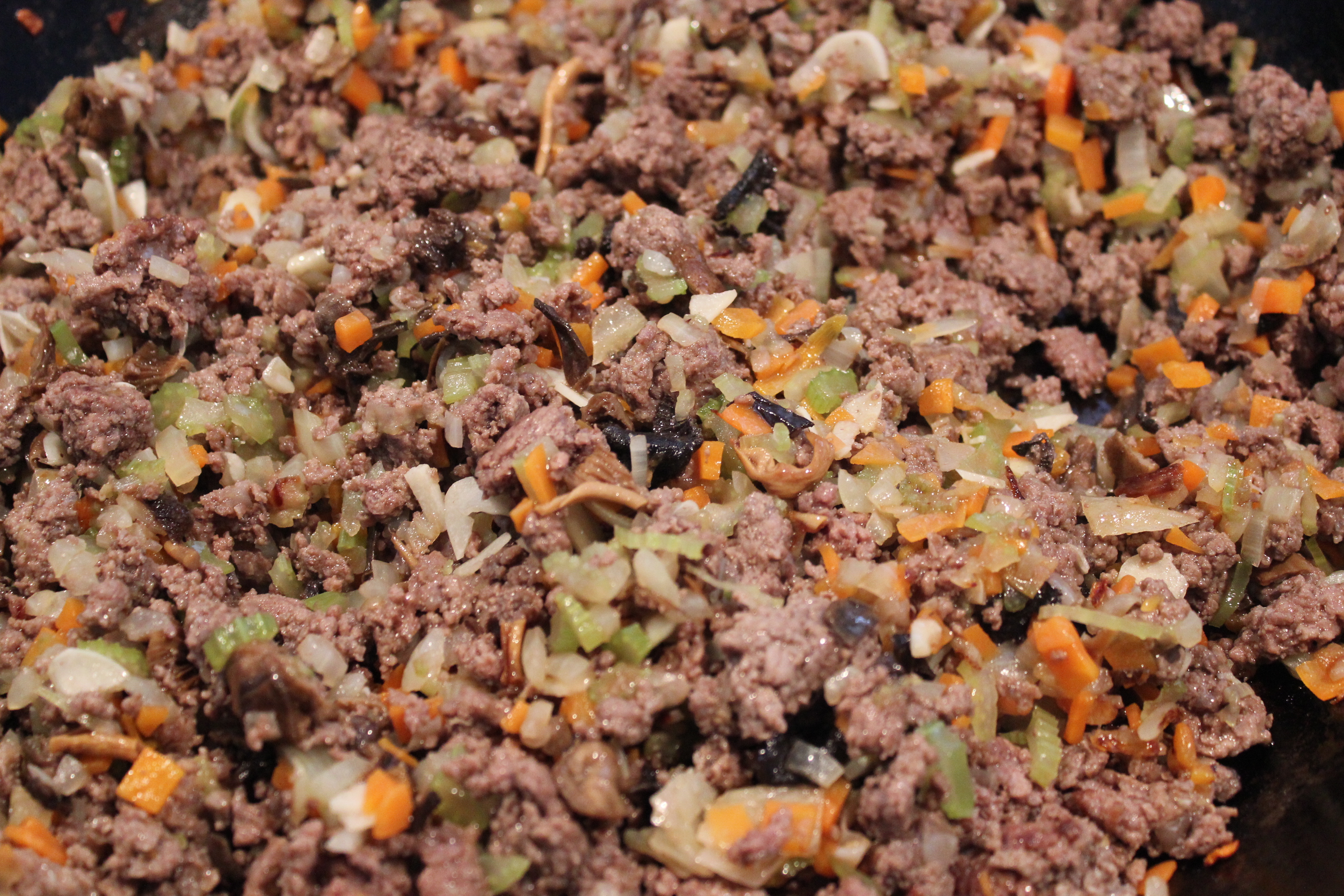 Vad gäller själva lasagnen så är den inte så märkvärdig och de flesta har säkert ett eget recept på lasagne. Jag försöker att göra min från grunden, utan att använda kemikalier i form av fonder eller buljongtärningar. De italienska recept jag lärt mig bygger ofta på att man gör allt från grunden, så att man får god och djup smak utan tillsatser. Jag använder älgfärs istället för nötfärs, men det är mer en fråga om tillgång snarare än ett aktivt val. Köttfärssåsen som är grunden går för övrigt utmärkt att använda som just köttfärssås.
