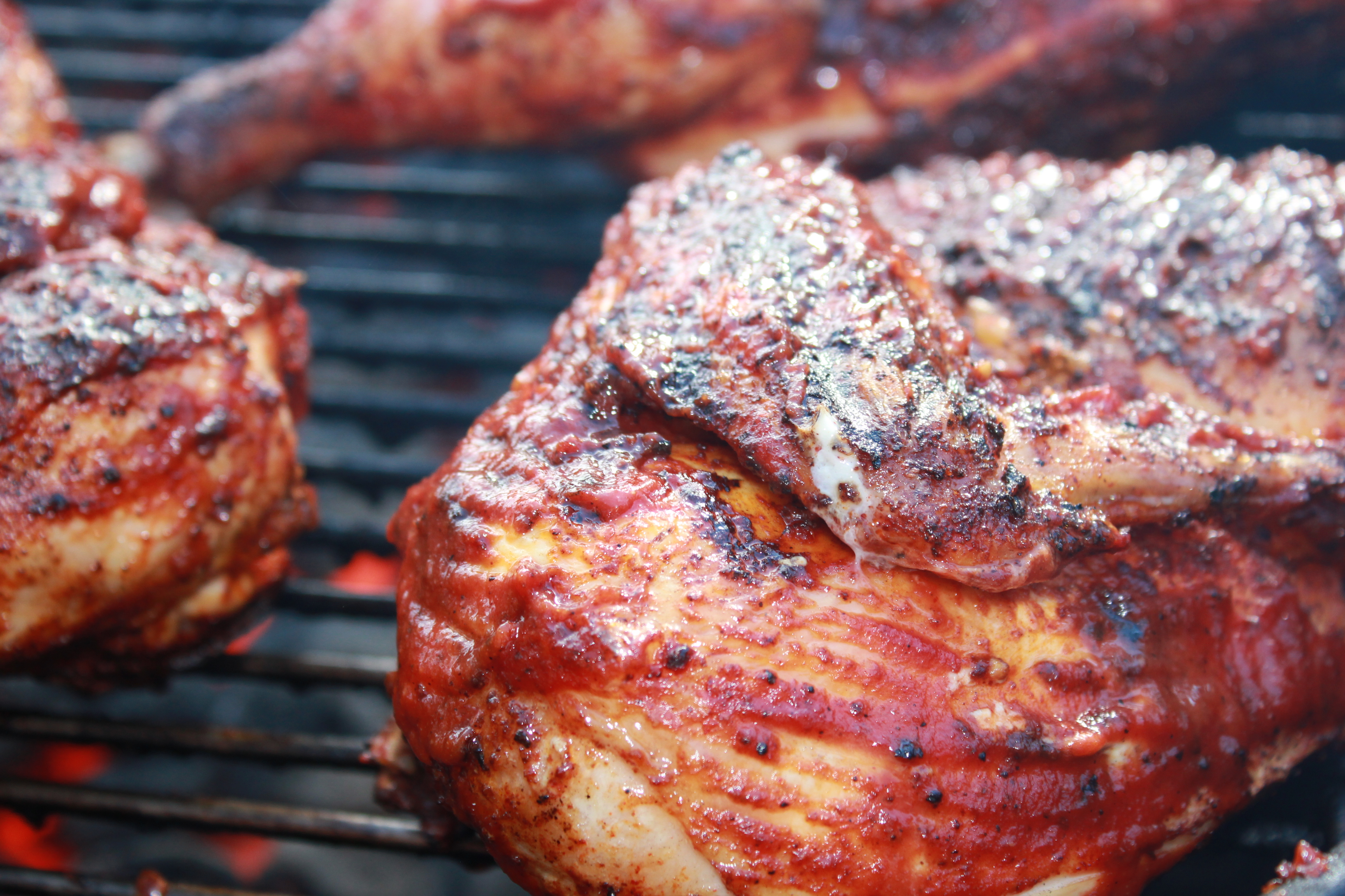 Blanda ihop ingredienserna till rubben. Stycka kycklingen i lagoma bitar och gnid in kryddblandningen. Låt kycklingen stå medan du