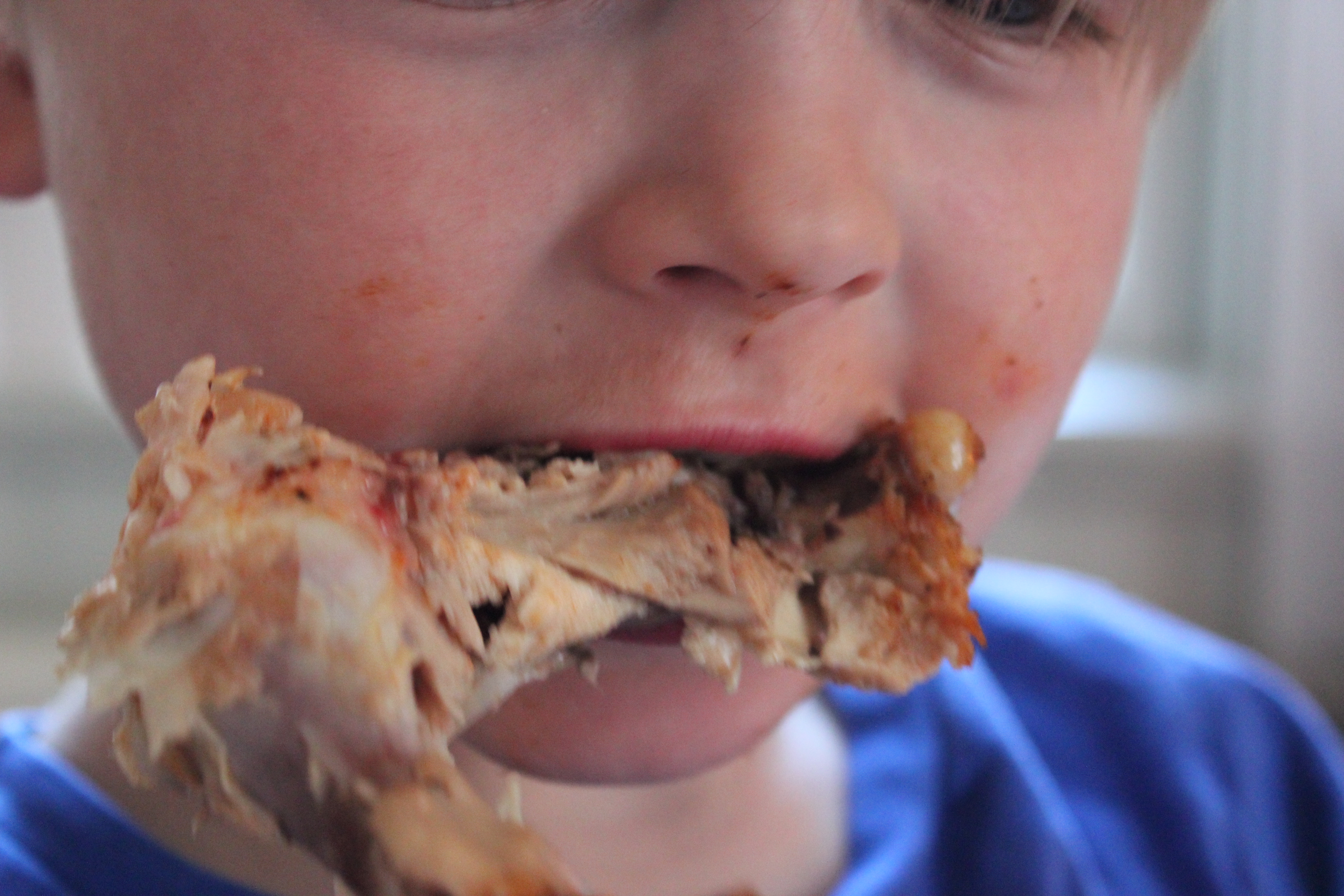 gick i frysen för senare bruk. Detta är ett hittepårecept förutom BBQ-såsen jag använde som glace. Den kommer från Martha Stewarts hemsida. Tyvärr blev inte den så bra. Smakade mest ketchup, vilket kan förklaras med att den mest bestod av ketchup. Det blev gott ändå, men rätten kan förbättras med en bättre glace. Rattepotatis, är en speciell sorts potatis som enligt förpackningen skulle smaka smörigt. God var den i alla fall.