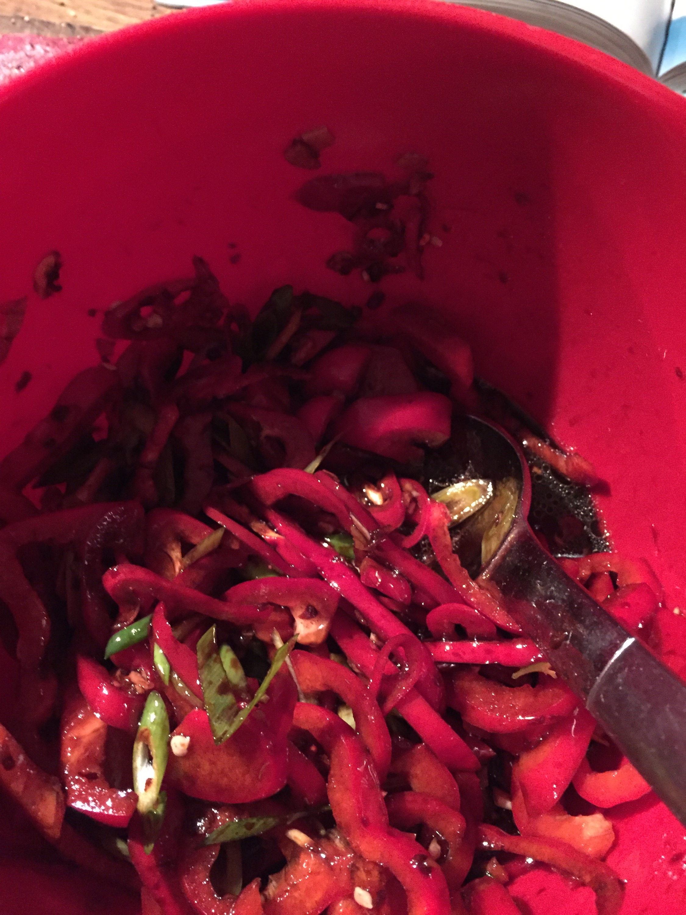 En sallad är perfekt så här medan man laddar upp inför julens fett- och proteinchock. Jag har ingen aning om vad ”Kam Bing” betyder men originalreceptet heter så. Det kommer från den utmärkta kokboken ”Kärlek, oliver och timjan”. Jag har givetvis modifierat det något och det går att lägga till det man tycker är gott