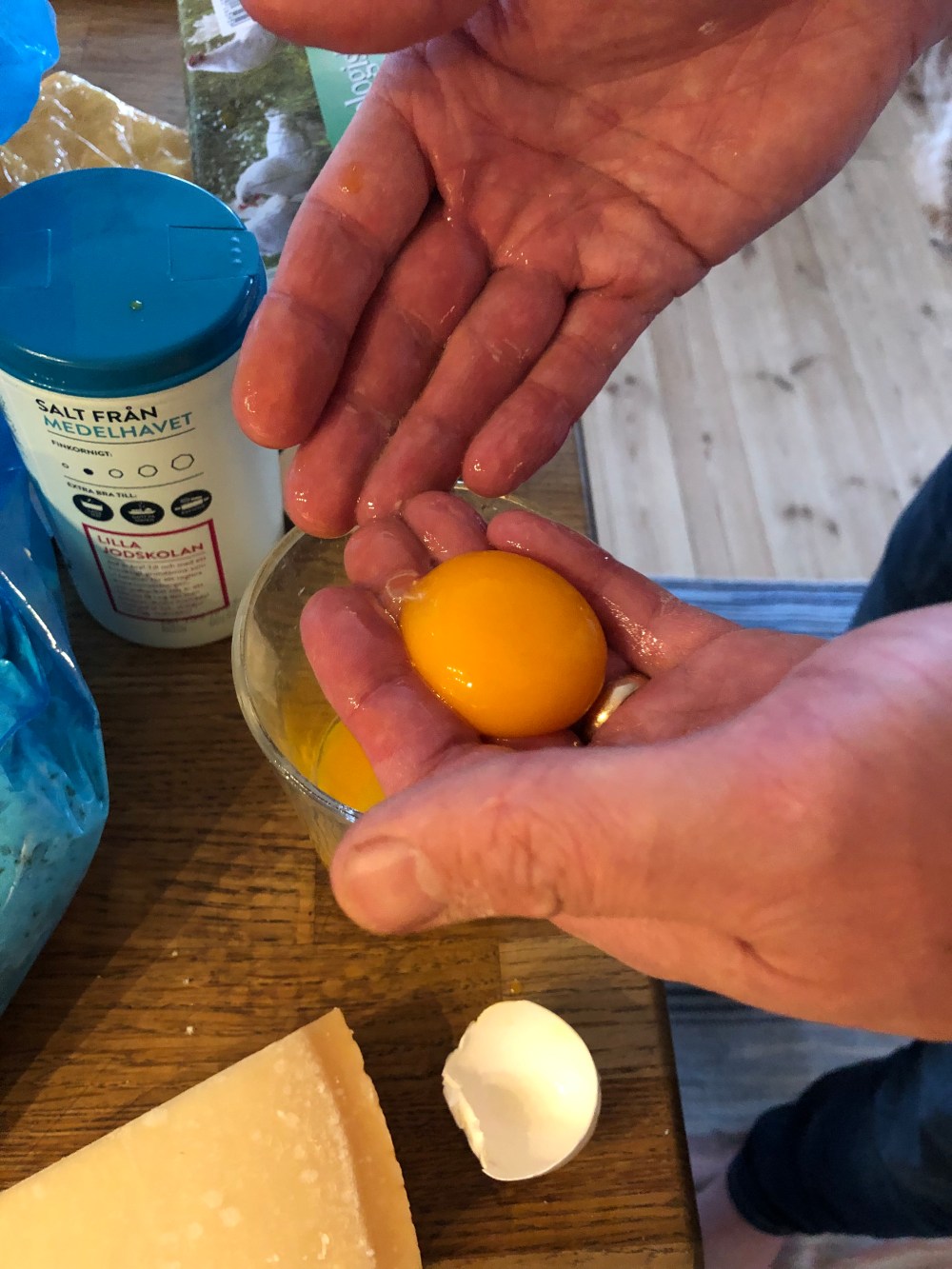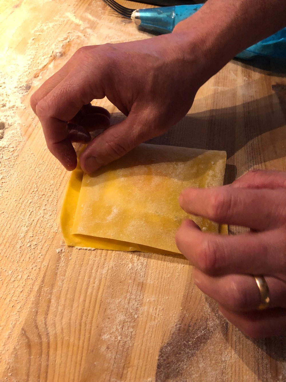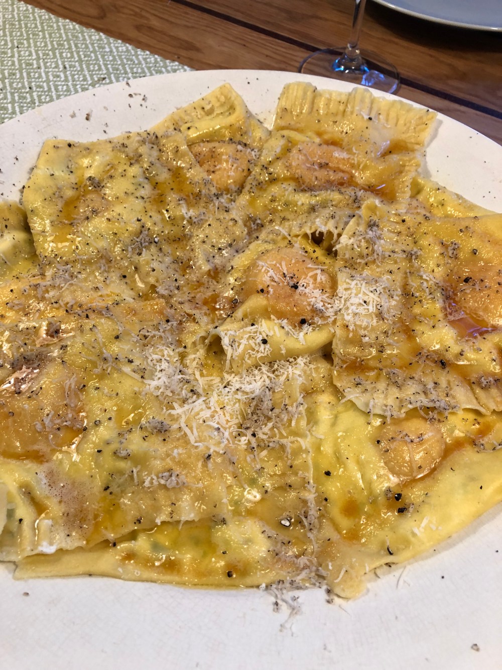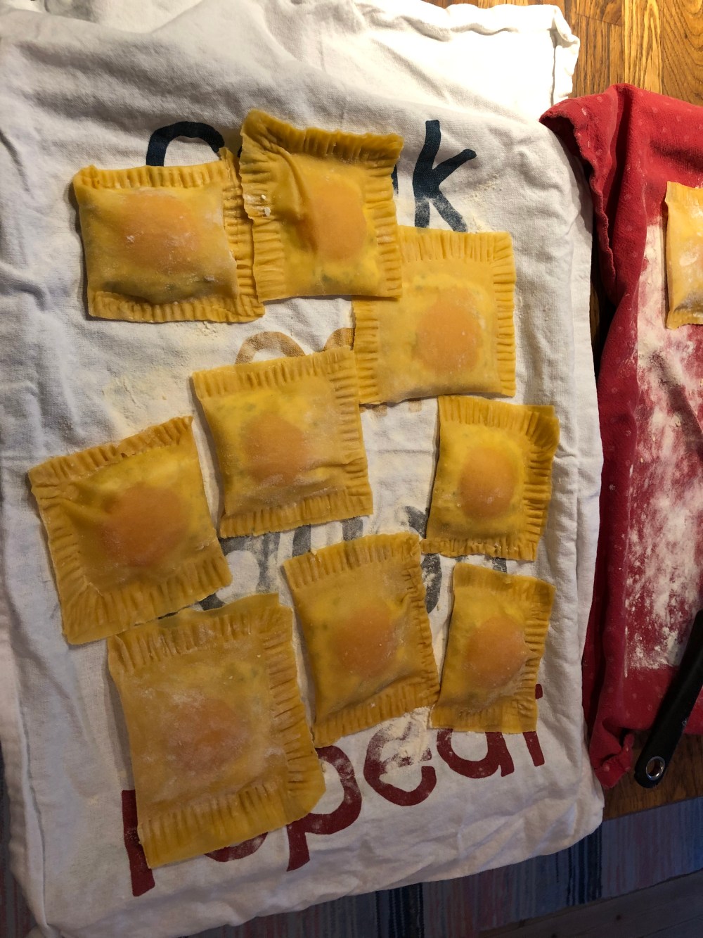 Detta recept är något jag fantiserat om att göra länge, men den kommer nog att bli bättre med vit tryffel. Det var dock väldigt gott och man kan göra den utan tryffel. Det låter som det är lite mat, men två raviolis gjorde mig lagom mätt. Det var också ganska pyssligt men det är det värt.