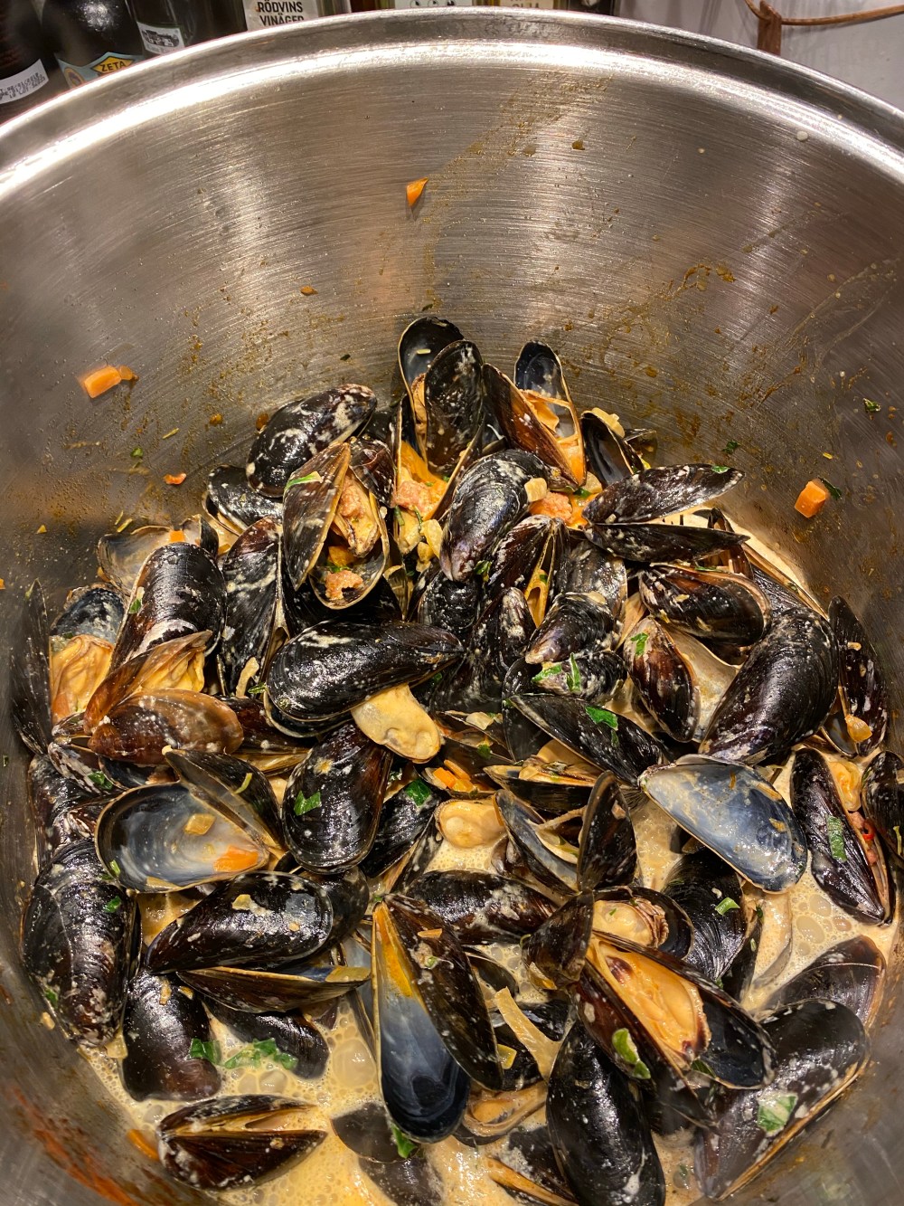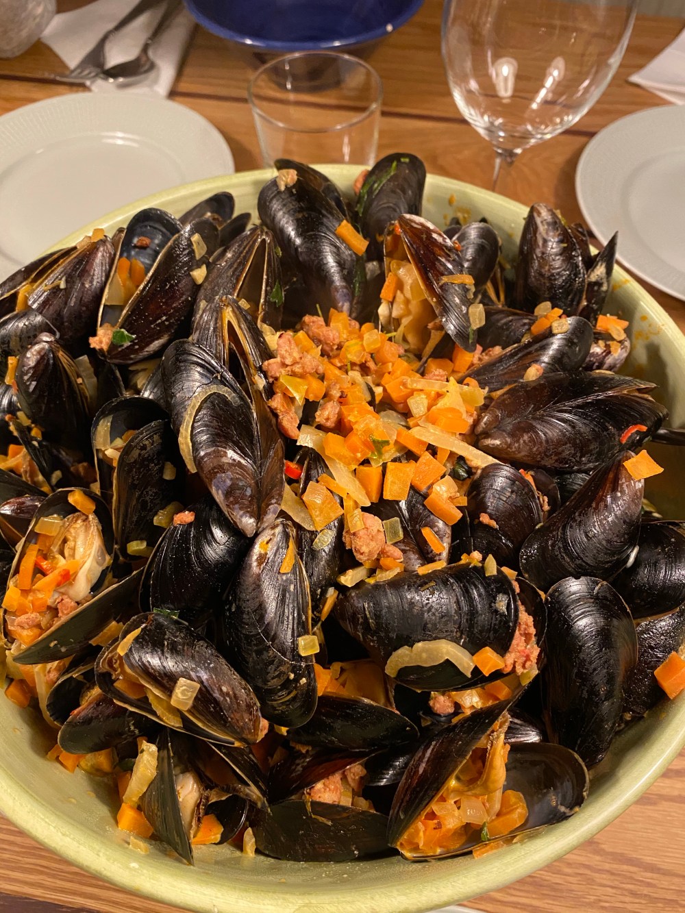Åt musslor med chorizo på den utmärkta restaurangen Buustamon i Åre får några år sedan och det var fantastiskt gott. Försökte återskapa den nu med detta recept. Det blev gott men inte riktigt lika gott. Nästa gång ska jag låta allt puttra längre innan musslorna går i.