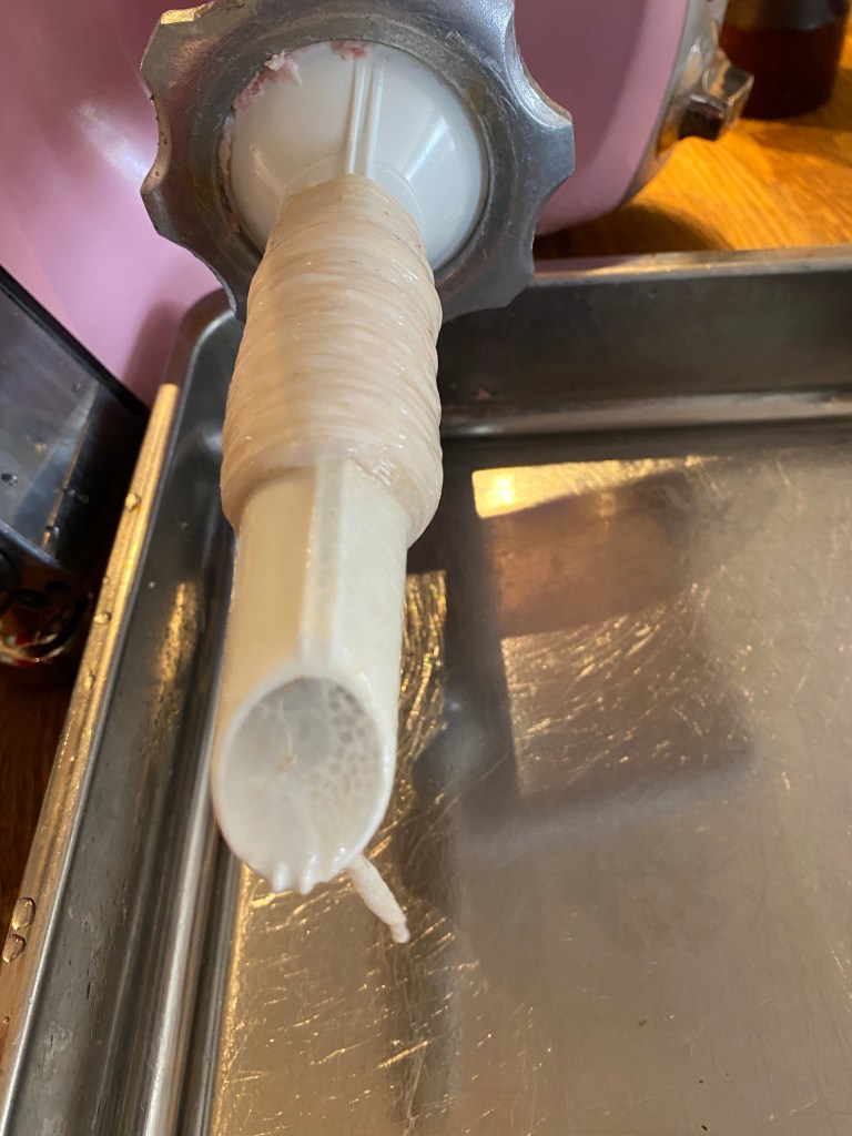 Nu är det dags att göra korvar. Det är svårt att beskriva i text men här är en video som visar hur det går till.