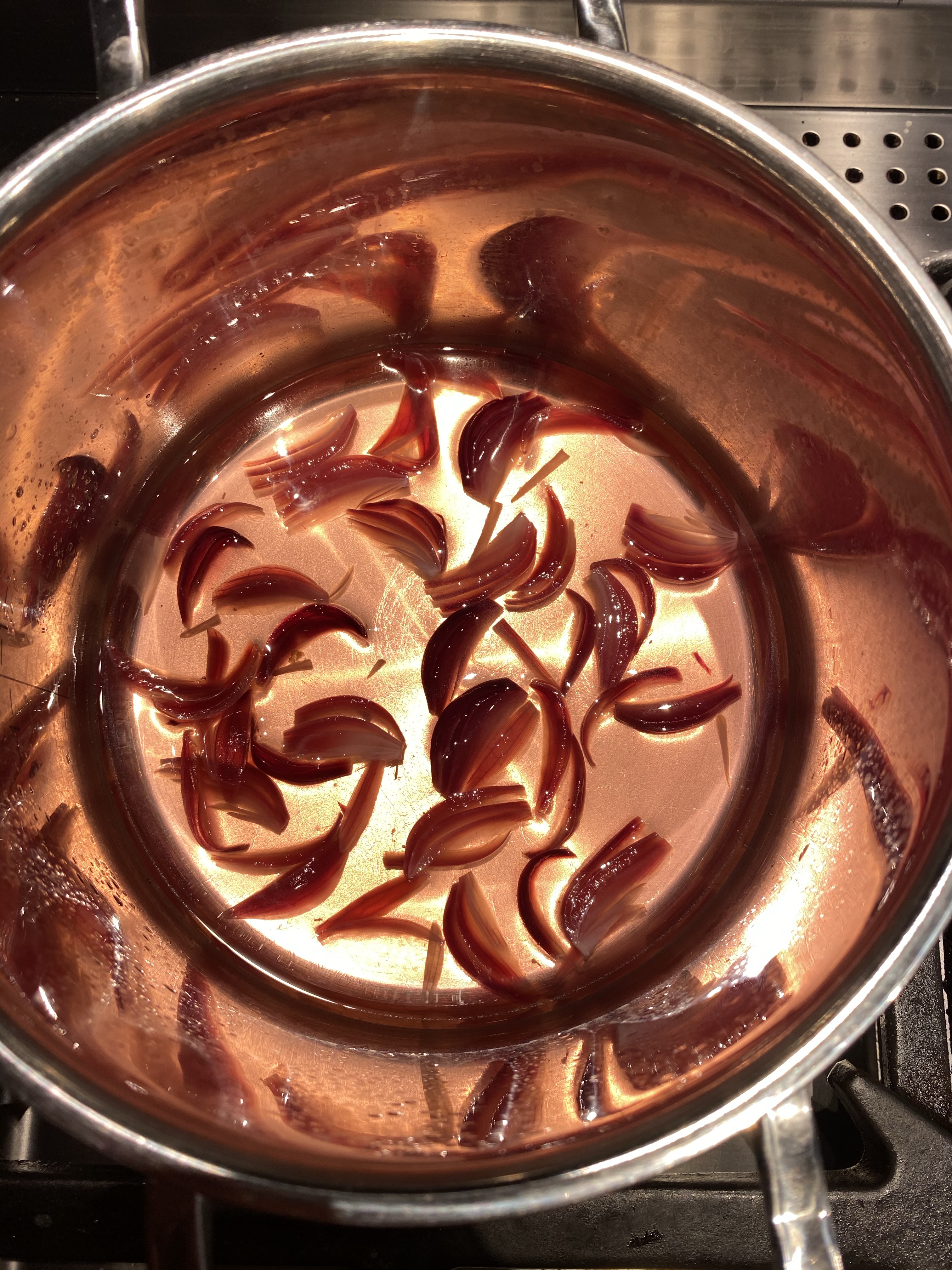 Lägg ner lökklyftorna och låt dem koka i ca 30 sekunder.