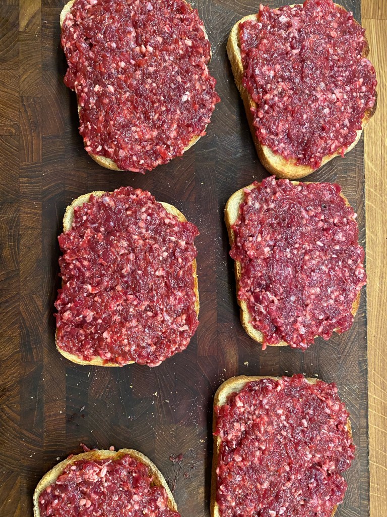 En rätt från 50-talet som jag var tvungen att pröva. Använde renfärs men det funkar bra med nötfärs eller annan viltfärs. Kallas också för parisare, men för mig är det en stor skiva falukorv i ett hamburgerbröd. Gott men inte så märkvärdigt. Funkade bra till en pilsner och en O.P.